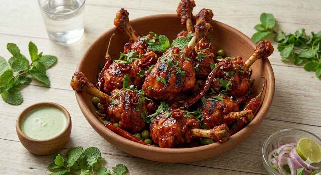Chicken cooked in spicy masala | Rich tomato and onion gravy | Served with roti or rice | Spicy indulgence