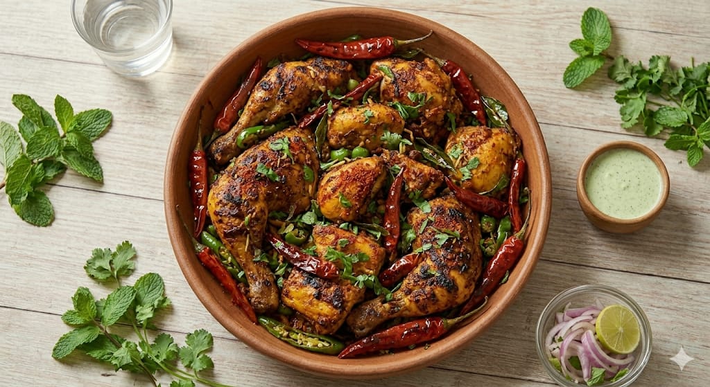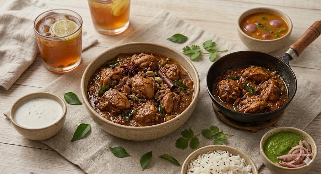 Chicken cooked with mixed spices | Flavorful thick gravy | Complements naan or roti | Popular Indian main course