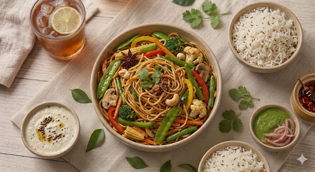 Fiery rice with veg tempering | Spicy and saucy | Serves well with a cool beverage | Ideal for spice lovers